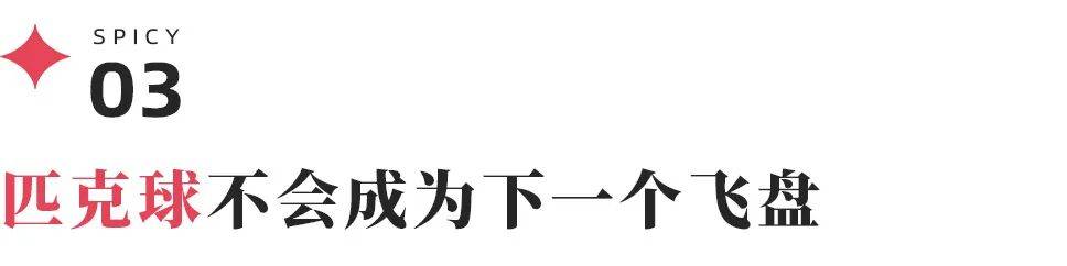 阿来则从最基层生意人的角度剖析,相比飞盘,匹克球拥有,且能支撑得起完整的商业闭环。飞盘产品单一,简单的塑料飞盘也不需要做产品创新迭代,如此飞盘撑不起装备供应商的生意。匹克球不然,球拍的技术迭代很快,品牌的持续投入已经说明问题。飞盘甚至没有自己专门的场地,相当于场地是完全0门槛的:“一个0门槛的生意,就意味着几乎不具备商业价值。”阿来的形容非常贴切:“飞盘这样的运动,就像空气,很重要,也很有必要存在,也很好玩,但空气无法商业化。”
