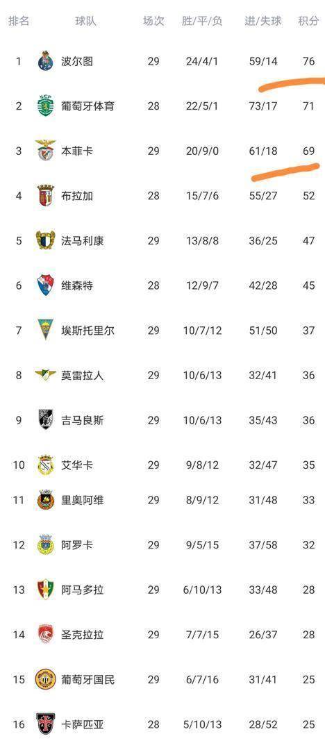 积分榜上,波尔图76分,本菲卡69分,布拉加紧随其后,形成了清晰的第一集团。 中游球队的积分则非常接近,一场比赛的胜负就可能导致排名发生多位变化。 保级区的竞争同样激烈,多支球队为生存而战。