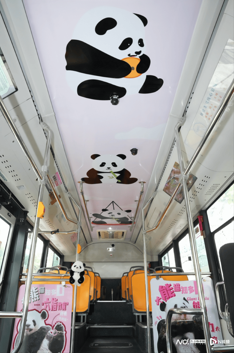 走进车厢,科普无处不在。扫一扫车窗上的动物叫声二维码,即可聆听大熊猫及园内动物邻居们的真实叫声并浏览图文介绍;车内电子屏循环播放“久久”“友友”在新家的生活趣态以及“雅一”“星一”啃竹爬树的生活实录。车内挡板区张贴“大熊猫知多D”趣味知识海报,揭秘大熊猫的“省电模式”与素食习性。