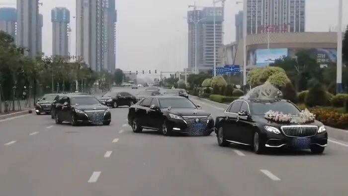 广东茂名10辆婚车在机动车道S形走位,交警:已接到报案,正在处理。