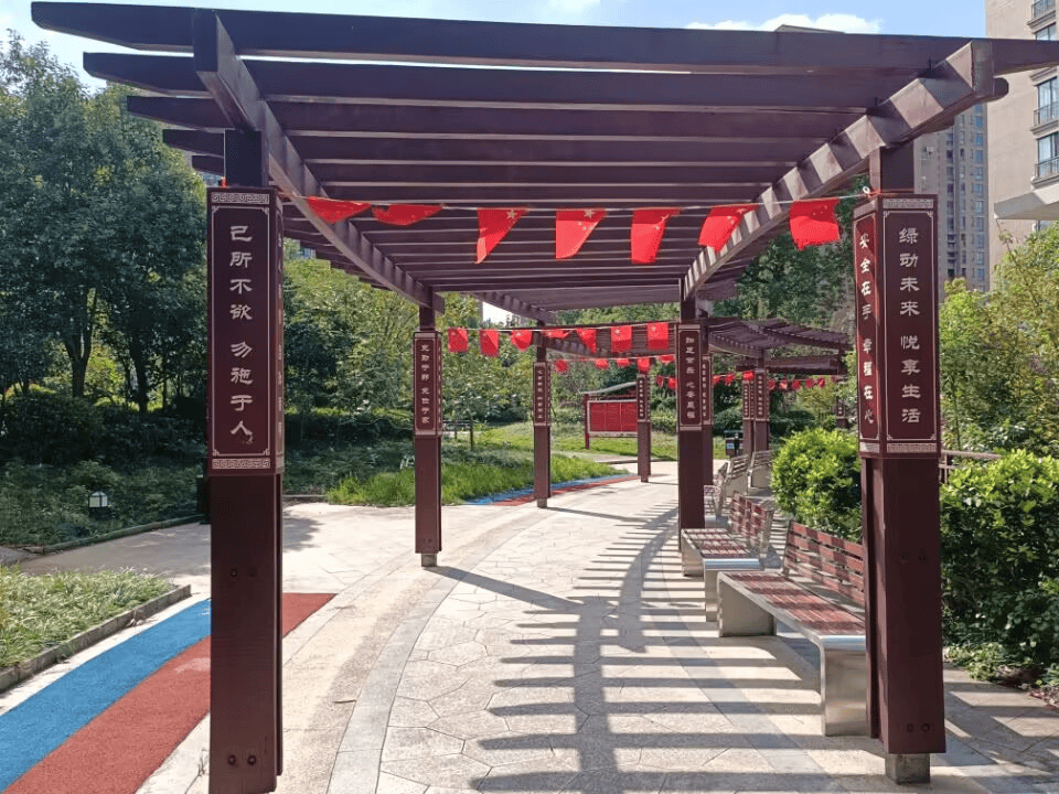 精准对接南山景园小区居民对休憩交流空间的迫切需求,对原有长廊实施“微改造”,进行主体重新粉刷、平整地面保障安全、补种绿化增添生机,安装了10张便民椅和2个宣传栏。改造后的文化长廊,功能复合、环境舒适,集休憩乘凉、健身娱乐、信息获取、文化交流于一体,以“小而美”的形式丰富了居民的精神文化生活,提升了社区的文化品位。
