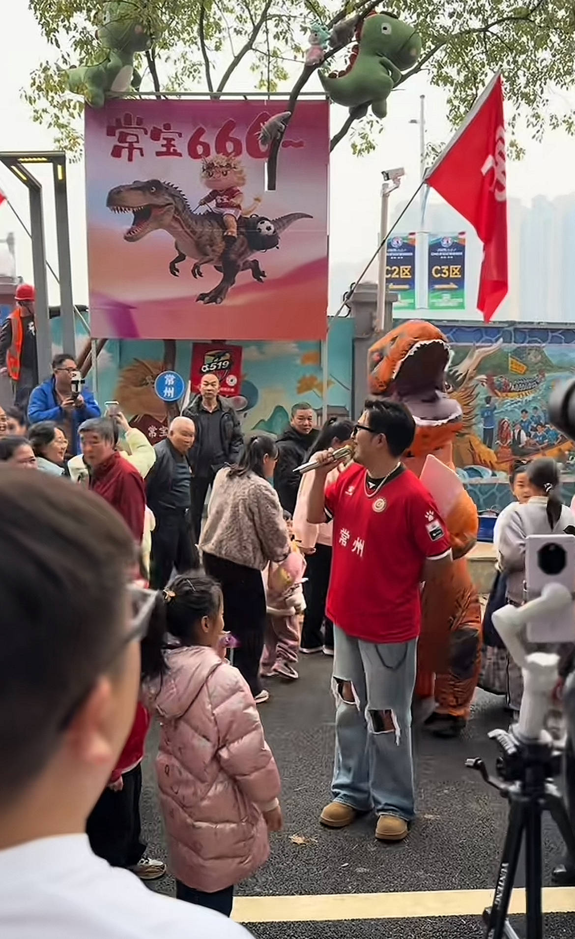 何先生和市民小朋友互动。网络截图。1月17日,在比赛开幕之际,何先生在14号树下与永州市民和小朋友互动,“当时在喊常宝666,小朋友喊得特别卖力,我们送了常宝手办。”何先生在网上发布了这条视频。
