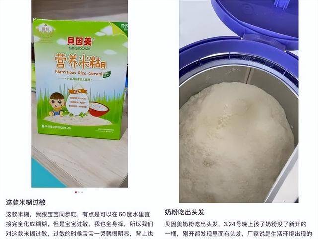 还有消费者指控贝因美米粉糊致敏,她与她的孩子同食贝因美的米糊后皆引发了过敏反应。食用后,婴幼儿出现哭闹症状,背部起颗粒状红疹;她则全身发痒。停用该米糊半天后,婴幼儿面部过敏症状消退,但背部红疹在八小时后仍未完全消除。
