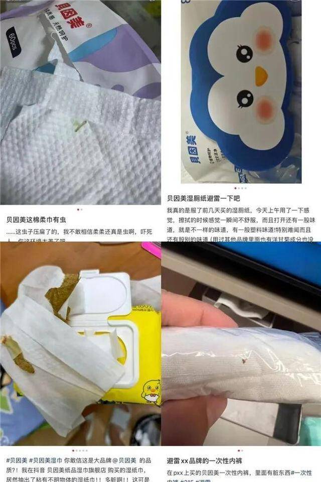 在个护产品线上,贝因美的问题同样突出。近期,本报记者接到消费者投诉称其在贝因美抖音旗舰店购买的贝因美湿巾有异物,她表示非常不解,第一这是大品牌“贝因美”,第二这是母婴产品。在小红书上,更多消费者投诉贝因美的棉柔巾、湿巾、一次性内裤中出现活虫。