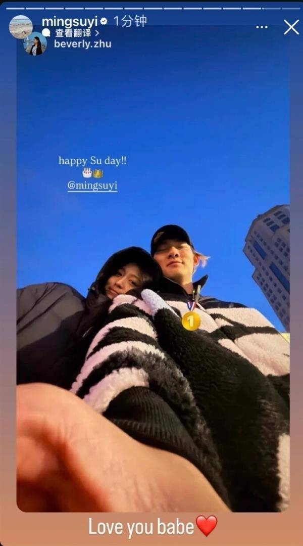 几乎在苏翊鸣夺冠的同时,另一条社交媒体动态也引起了广泛关注。他的女友,花样滑冰运动员朱易,在个人账号上发布了一张两人甜蜜的合照。照片中,朱易依偎在苏翊鸣肩头,画面温馨,她配文“happy Su day!”苏翊鸣迅速转发并回复“Love you babe.”,这条动态瞬间引爆网络,评论区被“体坛真情侣太好磕了”、“甜得过分了”的留言淹没。