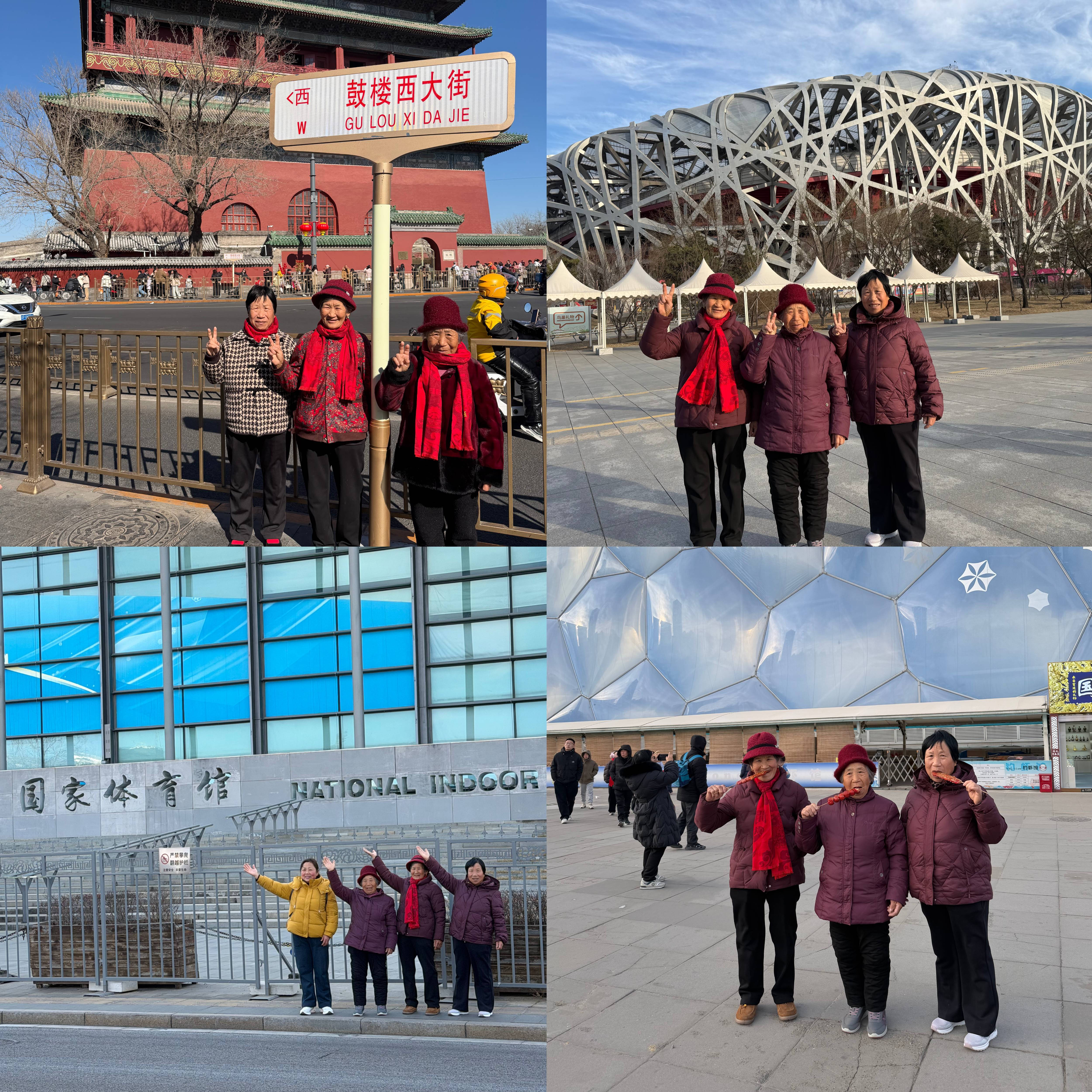 在三天的北京之行中,郁章宝带着家人们逛了鼓楼、鸟巢、水立方、国家体育馆等地,并在这些景点前合影留念。受访者供图