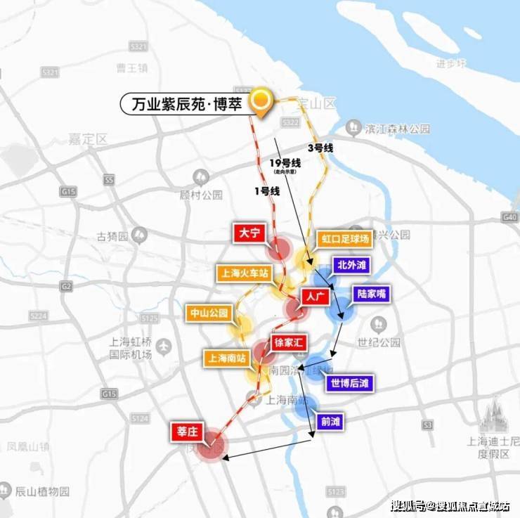 万业紫辰苑位于地铁 1号线 终点站富锦路站和地铁 3号线 终点站江杨北路之间,且距离两个地铁站直线米。 另外还有已经规划公示的地铁19号线年通车,杨行将成为未来北上海重要的交通枢纽 。