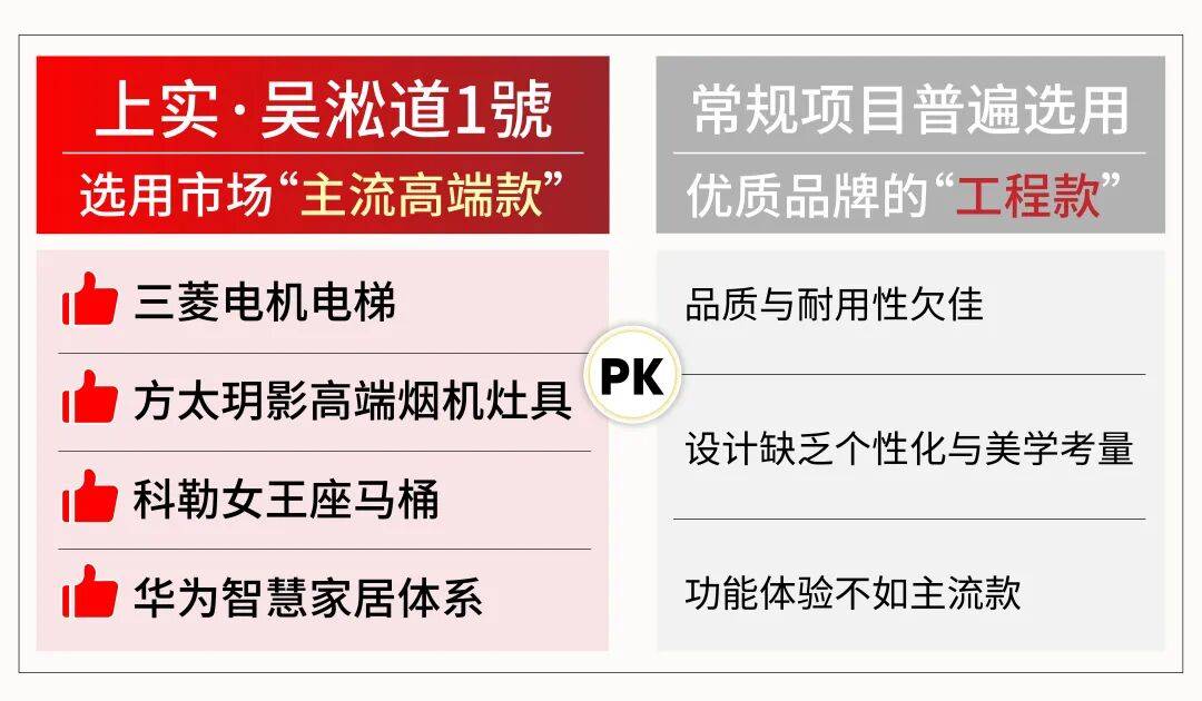 值得点赞的是细节,当多数项目还在使用千篇一律的工程款部件压缩成本时,吴淞道1號采用市场主流高端配置,用实打实的高配标准,诠释“精装好房上实造”,为居者带来超越期待的品质生活.
