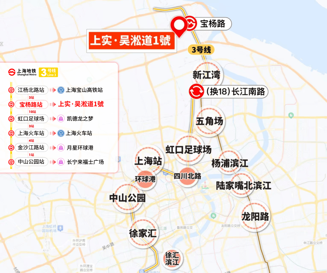 根据规划,以宝杨路站为核心的宝山区首个中央商务区正在崛起.目前,吴淞创新城“一平方公里”先行启动区已初现峥嵘: