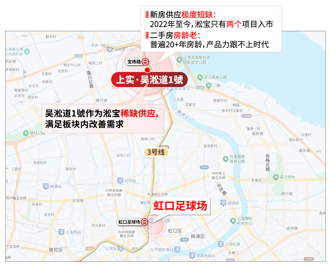 宝山淞宝「吴淞道1號」推出建面约100-145㎡三房四房,均价约6.3万/㎡!