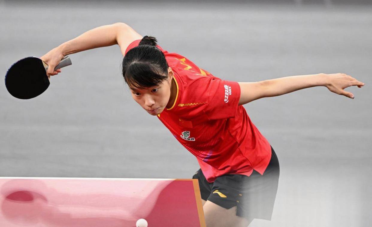 决定胜负的那一分,石洵瑶正手拉出一记非常有质量的弧圈球,直接打到了对手的死角,韩菲儿兴奋地挥拳庆祝。