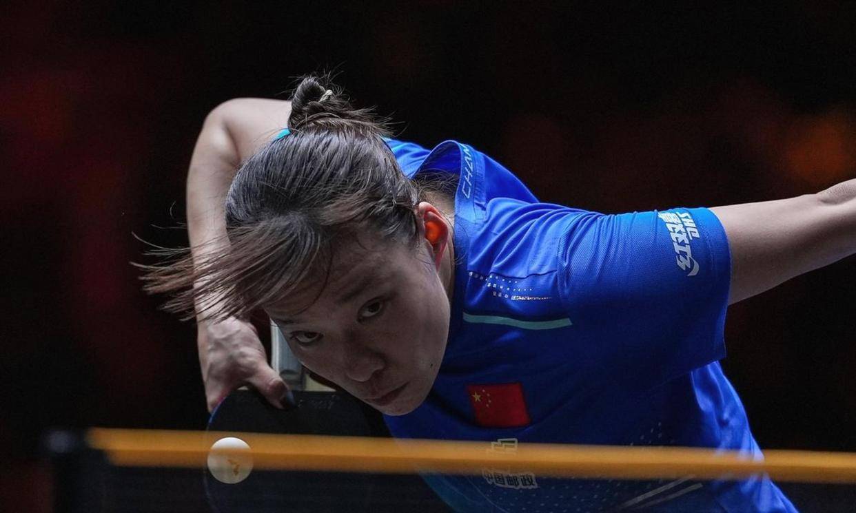 场馆里的气氛一下子紧张起来——石洵瑶擦拭球拍的时候跟韩菲儿简短说了几句,眼神里透着不服输的劲头。第四局成了整场比赛的最高潮,双方比分交替上升,从5平打到了10平,在关键时刻,石洵瑶一记高质量的发球抢攻得分,韩菲儿跟进补了一个,以12-10惊险拿下。