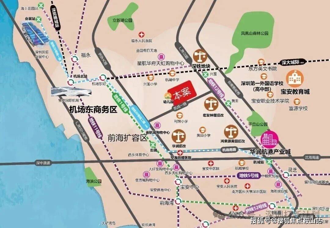 空铁新城机场东综合交通枢纽作为深圳建设国际航空枢纽与国家铁路枢纽的重要组成部分,集航空、高铁、城际、城市轨道、公交等多种交通方式于一体。目依托自身的交通优势。左连前海、右接会展。享受前海的金融利好辐射,又承载着会展的人流导入的功能。成是湾区三角中金融辐射、会展人流承载的核心地带