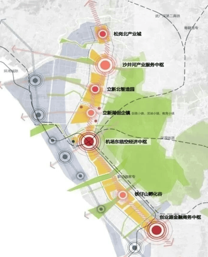北部连接东莞经济重镇长安,南边通往深圳高新技术产业园,前海自贸区,历来是宝安境内的交通要道,经济命脉。大型产业园集聚区十余个,品牌产业园区超40个,直接支撑起宝安产业大区的中部黄金发展