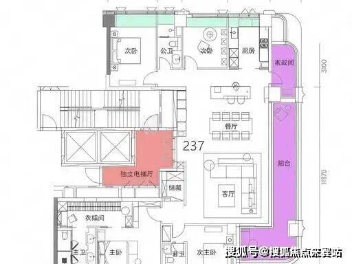 住宅标准层高3.3米,整体实用率高达约96%,与市场上豪宅约74-82%实用率对比,产品优势明显。每个户型都带超大转角阳台,空间非常舒适,看深圳湾城市景观。