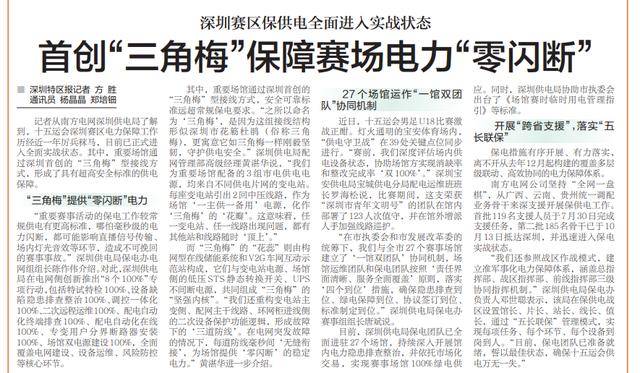 【深圳特区报】深圳赛区保供电全面进入实战状态首创“三角梅”保障赛场电力“零闪断”多宝体育- 多宝体育官方网站- APP下载